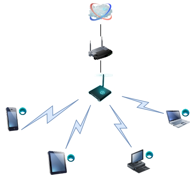 Devices in your home connect via Wi-Fi to the Anyone device’s hotspot. The hardware intercepts all the traffic from these clients and forces it through the Anyone network