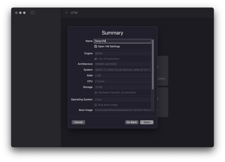 Specify the preferred **Name** of your Virtual Machine, then check the box **Open VM Settings** and click **Save**.