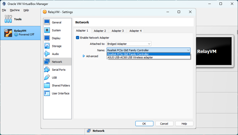 Depending if you want your VM to use Wireless or wired Ethernet Connection, change '**Name**' to the adapter of your choice and keep in mind that this name may vary depending on your hardware.