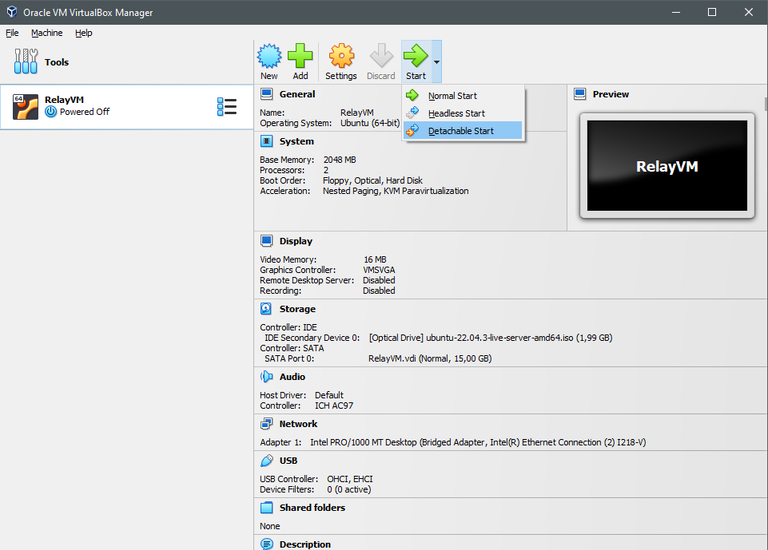 Click the small arrow next to '**Start**' and choose '**Detachable Start**'. This allows you to close the console window later on.