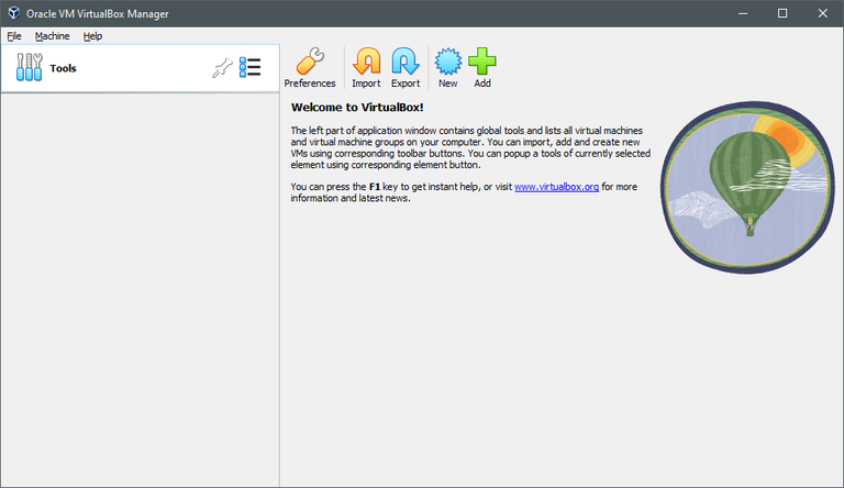 Once the installation is finished, open VirtualBox. The VirtualBox Manager window, the primary interface for managing your virtual machines, should appear.