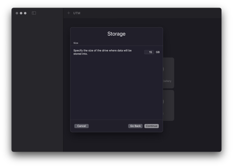 f. Choose disk size; a minimum of **15GB** is sufficient \