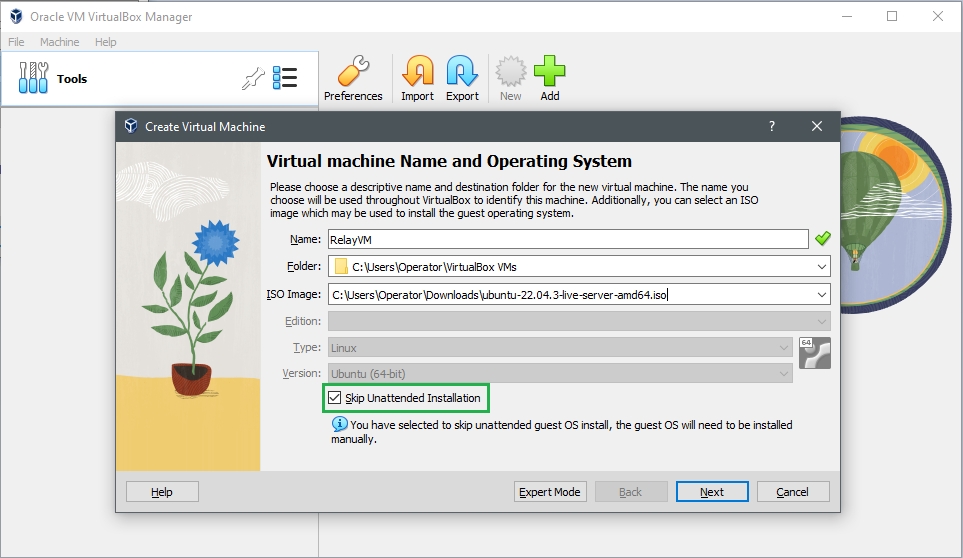 a. Provide a preferred name for your virtual machine b. Browse and select the ISO image downloaded in preparation c. Check the box for 'Skip Unattended Installation' d. Allocate Memory (RAM); a minimum of 2 GB is sufficient e. Allocate processors (CPU); a minimum of 2 CPU is sufficient f. Choose disk size; a minimum of 15GB is sufficient g. Press 'Finish' when all changes have been made